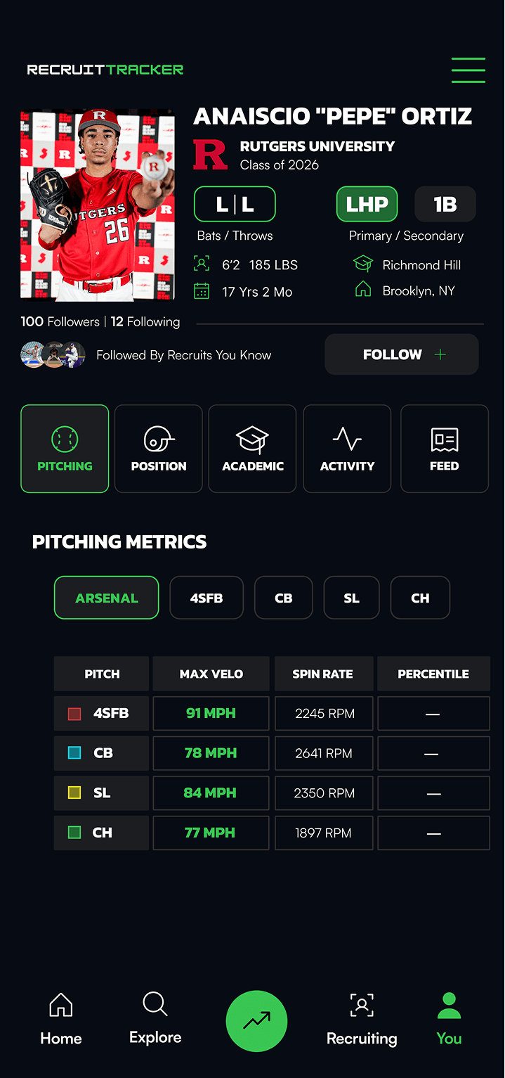 RecruitTracker is the only baseball-first platform to track progress, showcase verified metrics, and get discovered in one place. Now in limited beta.